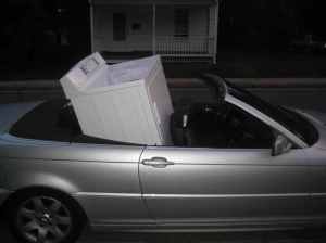 LBL prepared to leave for an appointment. NH asked her to take his car and he would take hers to check out the dryer he found on Craigs List. LBL was a bit skeptical. She has a convertible. It is extremely small. But whenever large items are purchased, the top is out down, and the car effectively becomes a pick up truck.