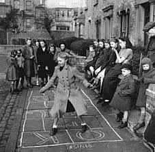 Yesterday evening, at the bus stop, I saw a little girl of about nine playing hopscotch on the pavement (sidewalk). She was using the paving blocks as squares, and a small stone. There you go – the game is still alive and well and simple!