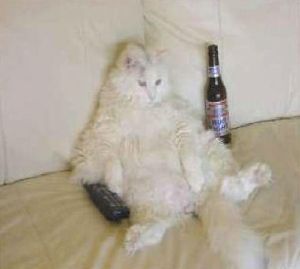 I just finished watching the Patriots game and in a remarkable coincidence, I was sitting on the couch next to a bottle of beer and looked exactly like that cat. Does this mean I am in trouble with the resolutions already? Oh, and is Christmas over? Did I miss it? I think I did.