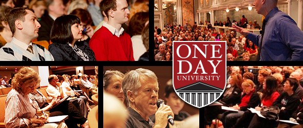So began the first powerful lecture that Life in the Boomer Lane attended, yesterday, at One Day University in Washington, DC. One Day U is the brainchild of Steven Schragis, who invites the most popular university professors around the country to give lectures covering a wide variety of topics. It’s perfect: fascinating classes, minus homework and exams. Since 2006, One Day U has gone from one location to 55. Hundreds of professors across the country take part.
