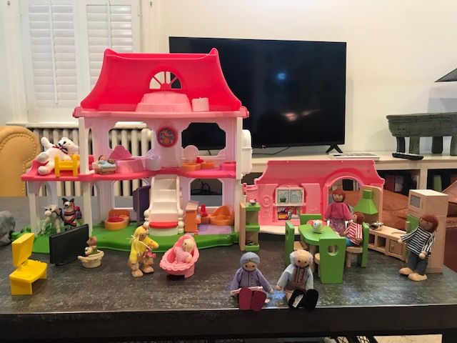 Among the items was a dollhouse, circa 1980, state-of-the-art for the era when Reagan, puffy sleeves, and The Mullet haircut reigned supreme. The dollhouse was plastic, bright colors and battery operated. When the house was turned on, it did any number of things guaranteed to delight small children, in an era that didn’t include video and cell screens. With the advent of Covid, the dollhouse sat in LBL’s attic, along with all the other toys now no longer used by visiting grandchildren.